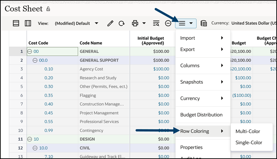 You can also modify the row coloring to make the cost sheet easier to digest.
