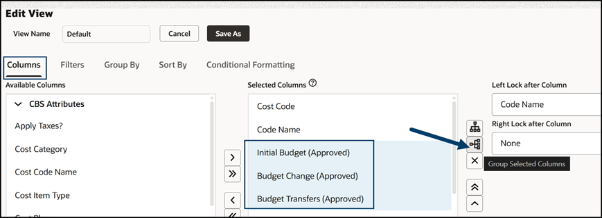 Once you’re in the Edit screen, select the columns that you wish to group and click the Group Selected Columns button. You will be asked to give the grouping a name. Keep grouping columns, as you wish.